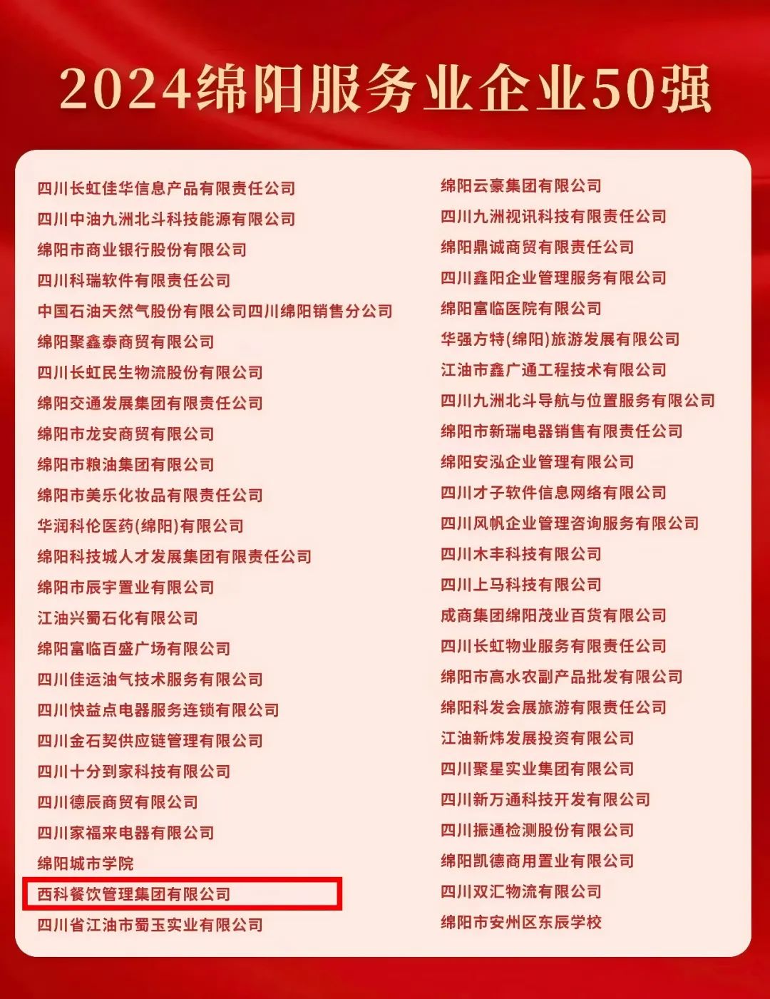 【喜报】“2024绵阳服务业企业50强”出炉!球信网餐饮管理集团有限公司强势登榜!